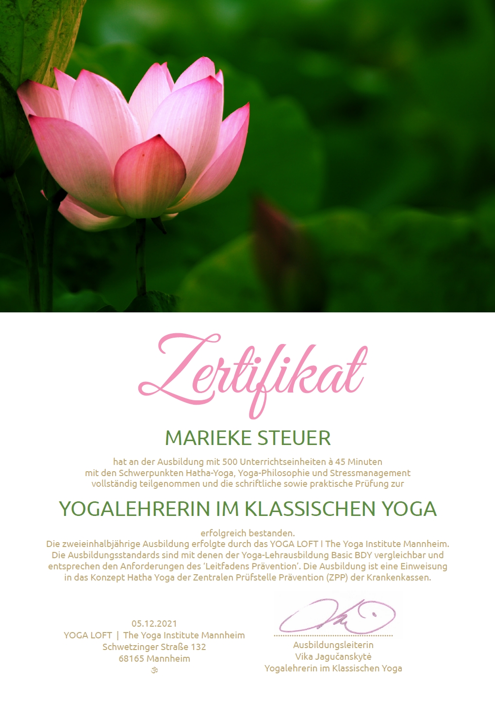 500 Stunden Classical Hatha Yoga Ausbildung (YOGA LOFT Mannheim)